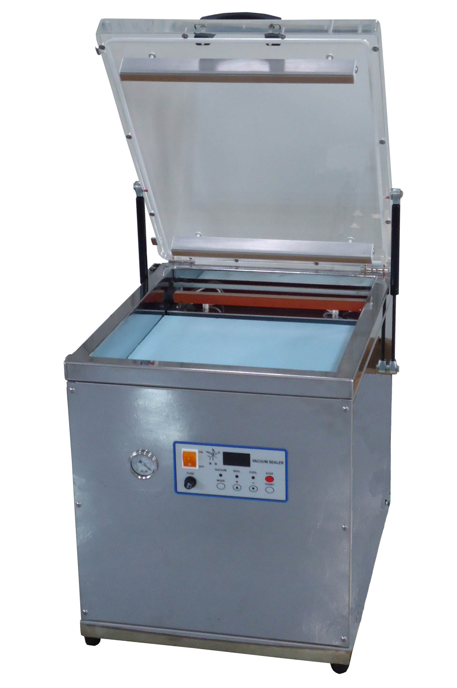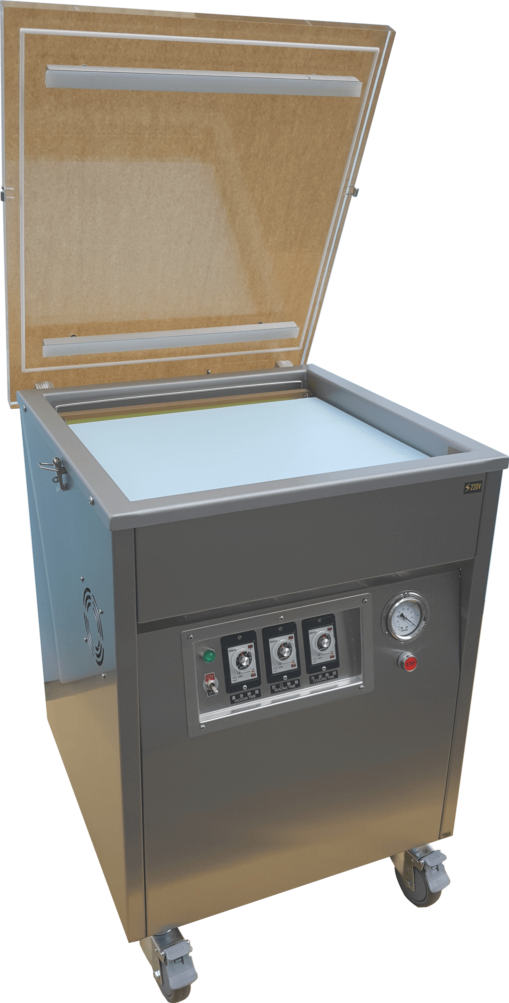 WU-HSING’s WVVB Chamber type Vacuum Sealer. Made by stainless steel (SUS#304) housing, hygiene and safety. It maintains a high vacuum level and preserves liquids and powders within the bag. Package size is limited by the size of the vacuum chamber. Impulse sealing model requires no preheating, but requires a Congealing time. The acrylic cover allows for viewing of the vacuum packaging process.