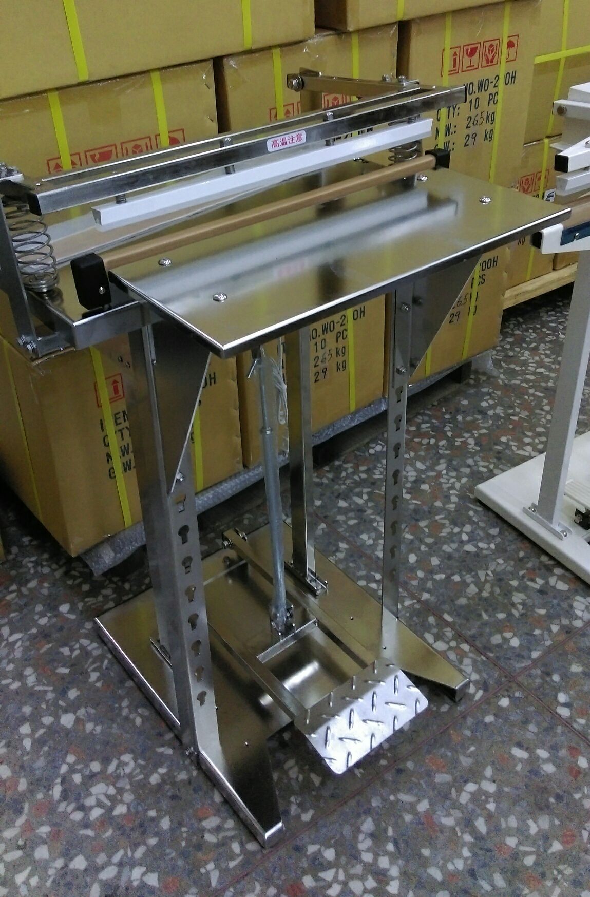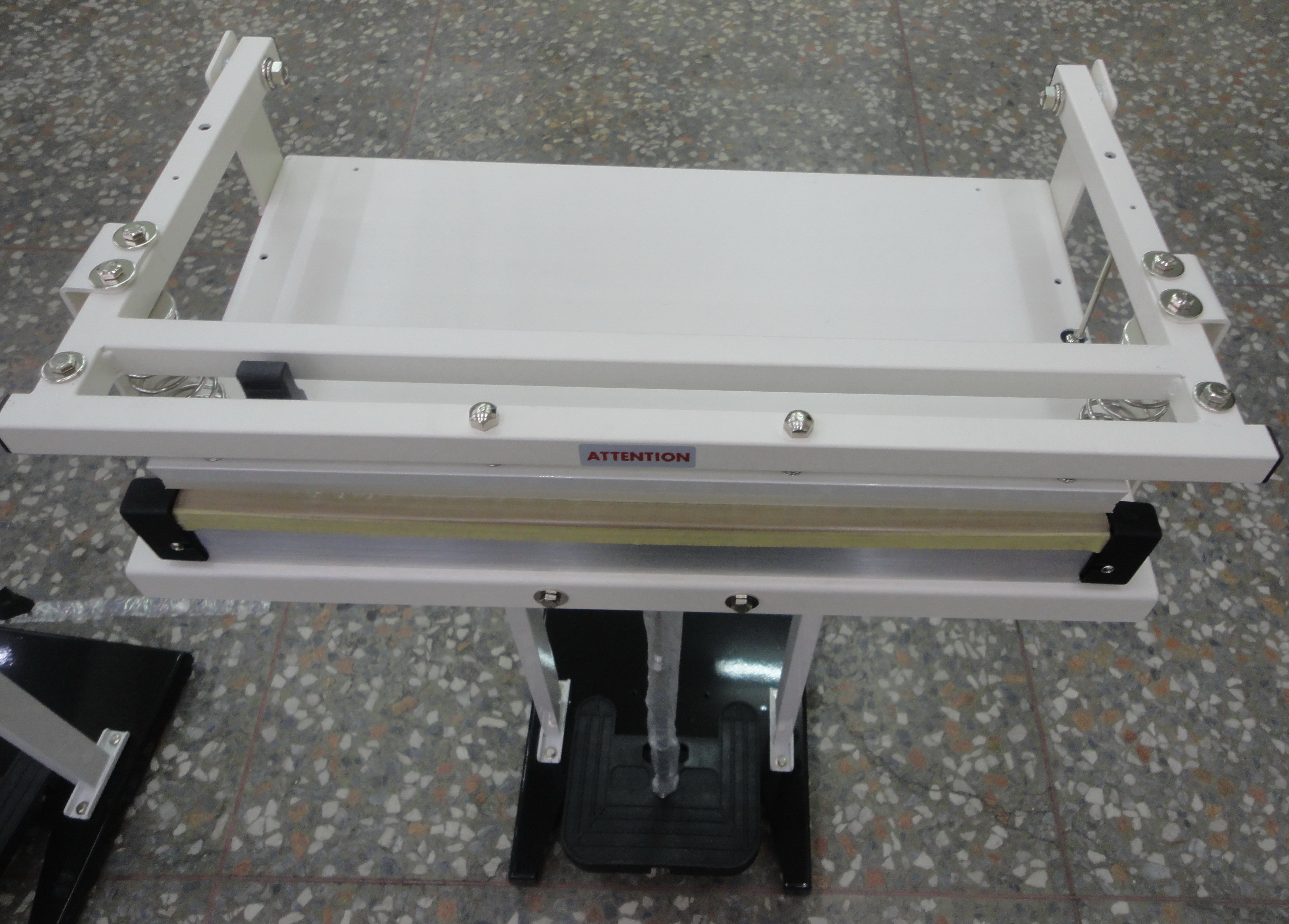 100% made in Taiwan newly type foot sealer (WN-BC) made in steel with powder coating. Impulse sealing needs the Congealing time. Comes with a sliding cutter has an obstruction free throat allowing the use of roll-dispensed material to pack and seal.