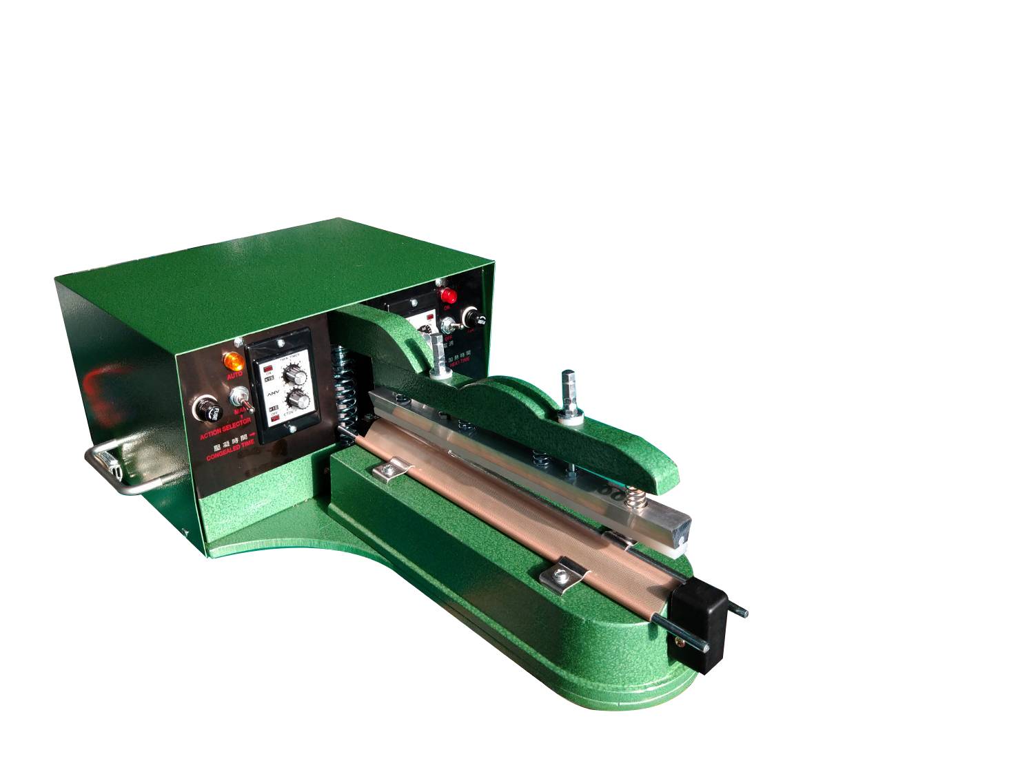 台灣製造 桌上型鴨嘴式電動單線瞬熱封口機,2’S Timer時間控制,瞬熱式免預熱,需壓凝冷卻時間,雙手握住包裝袋,可設定3時間做自動連續封口,或腳踏開關操作,施力平均,3種尺寸可供選擇:300mm ~ 600mm,2.7mm、5mm為封口,0.8mm 是封口兼熔斷,適用PE塑膠袋。